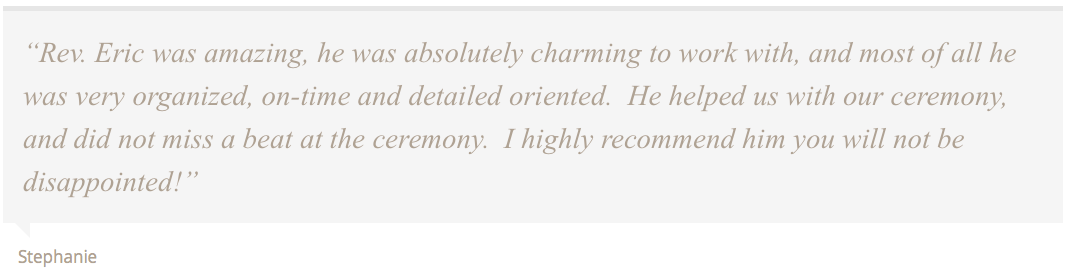 Below are a few testimonials from couples I have married! I am so thankful for everyone who has taken the time to write about my services.